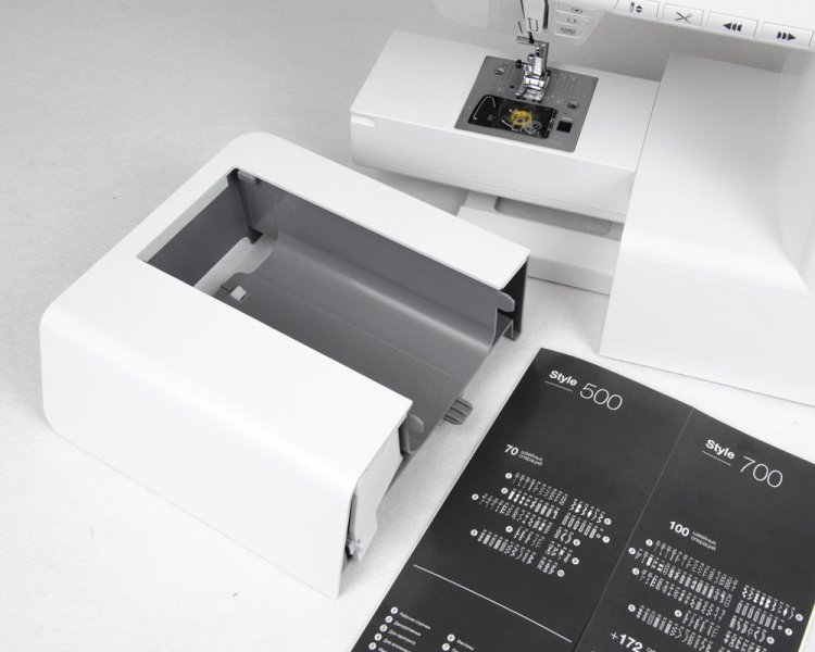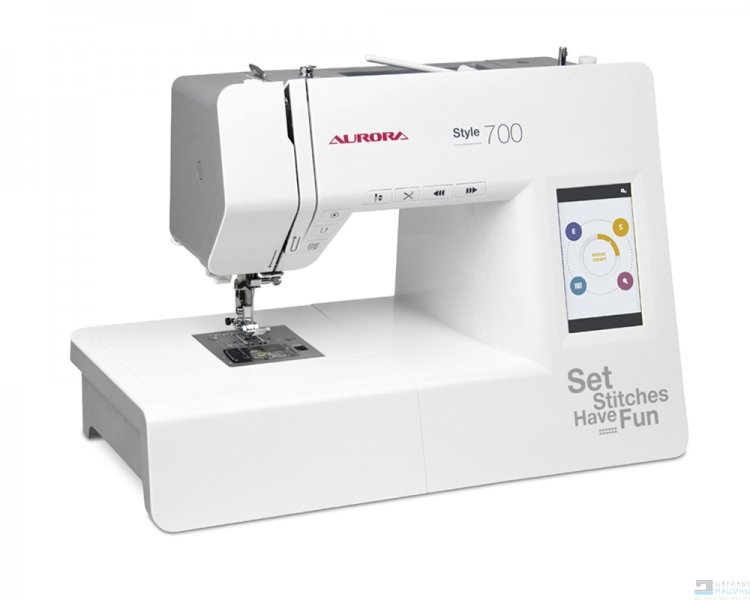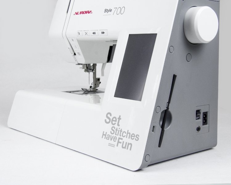 Aurora Style 700 - компьютеризированная швейная машина. Интуитивный интерфейс и большой цветной сенсорный дисплей (5") позволяет выбрать швейную операцию и изменить настройки шитья. 100 швейных операций включают в себя рабочие, декоративные, строчки для квилтинга, бордюры, имитации вышивки, швейный алфавит (172 символа) и многое другое.