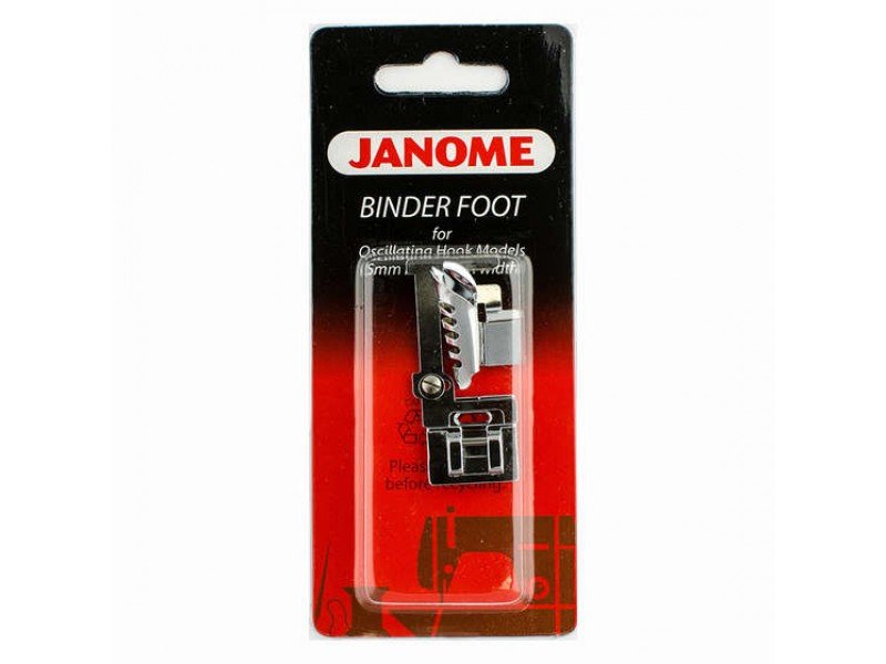 Лапка для окантовки (артикул 200-140-009) предназначена для швейных машин Janome с вертикальным челноком и шириной зигзага 5 мм.
