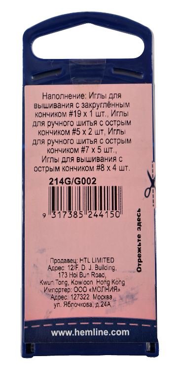 Иглы ручные для домашнего хозяйства №19, 5,7,8, 12 шт Hemline