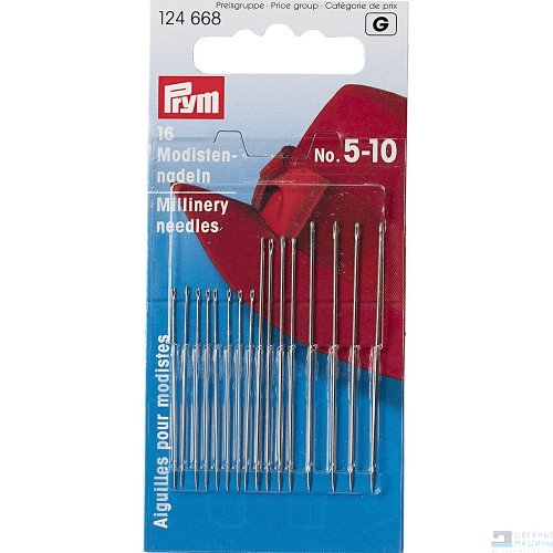 В наборе 16 шляпных игл с золотистым ушком №5-10.