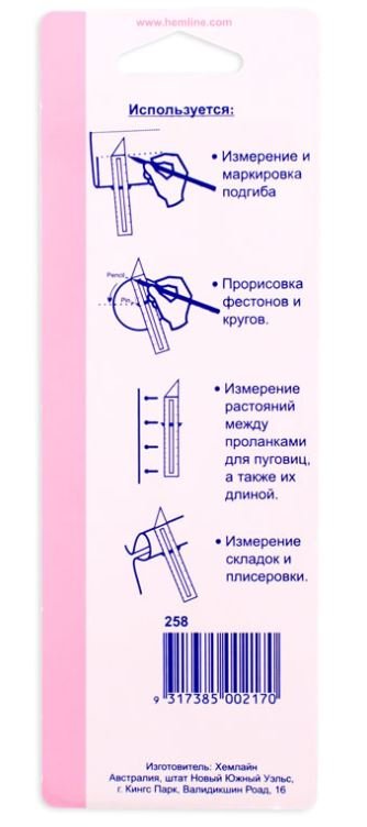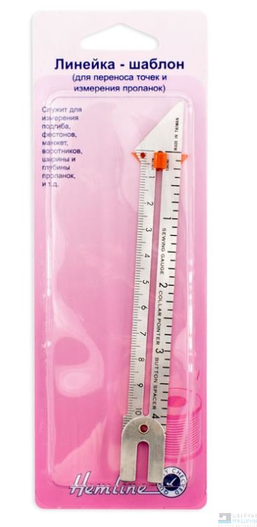 Используем также для маркировки деталей выкройки при раскрое: размечаем припуски на швы, длину подгиба, ширину и глубину деталей. Подвижный красный пластиковый индикатор фиксирует заданый Вами размер.