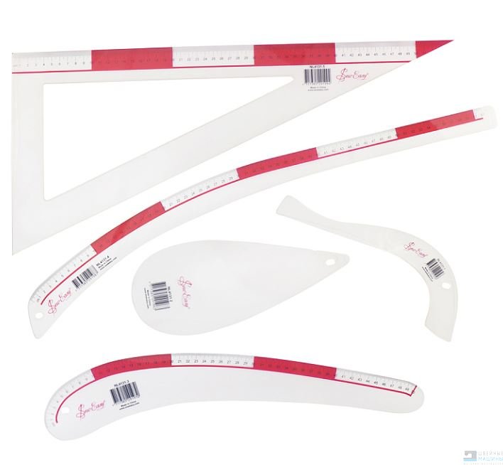 Набор портновских линеек и лекал, состоит из 5 линеек и лекал.
